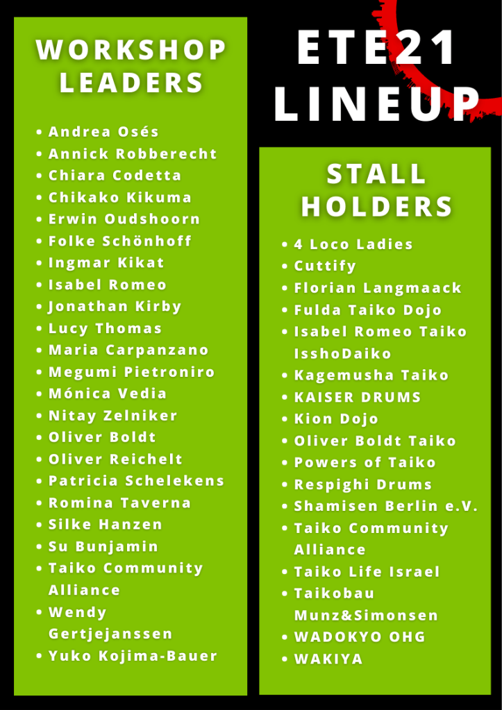 After going through all of the applications and fitting in what we can into what will be a very very busy weekend, we are so so so so happy to announce the workshop and stall holder lineup for the ETE21.