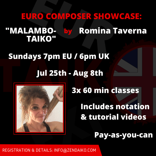 Il concerto, a cura del core-team di Amburgo, sarà una performance senza soluzione di continuità dall’inizio alla fine: nessuna presentazione, solo taiko. Una celebrazione dei singoli gruppi europei che creano e compongono brani originali e anche uno spazio per la presentazione di nuove opere collaborative. Vogliamo sentire e vedere le singole voci del Taiko europeo in un colorato arazzo che ci connetta tutti.